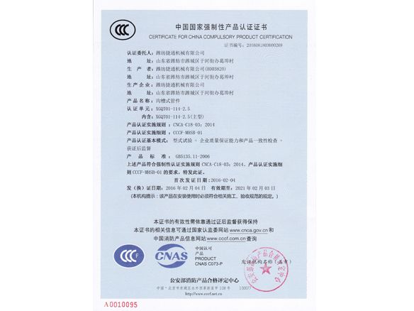 濰坊捷通機(jī)械有限公司3C認(rèn)證成功